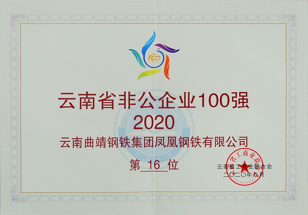 重磅!云南曲靖鋼鐵集團(tuán)鳳凰鋼鐵有限公司為2020年云南省非公企業(yè)制造業(yè)20強(qiáng)第9名,云南省非公企業(yè)100強(qiáng)第16名。云南省非公企業(yè)制造業(yè)20強(qiáng)第9名9月1日,2...